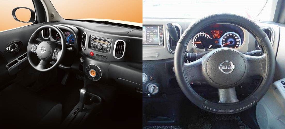 Inside the car there are a few obvious differences the first being where you sit. Japanese cars aside from those that have a sports heritage seem to almost all be automatic and on top of that in the box cars they like to have that auto shifter on the tree. This means the front seat in the JDM cubes are a bench althought they have a cupholder in the centre of the seat (seems they had a serious number of cupholders in the parts bin as the cube could never be said to be short of holders!). Very cool when you see the shots of the JDM interior but not exchangable to any of the other markets as it’s only JDM cubes that have column mounted shifters. This causes issues if you look to buy seat covers though as if they come from Japan they will have the seat base cover being far to big on one side and needing adjusting or tucking to suit. Again worth avoiding if your spending hundreds of pounds or Euro’s on Clazzio covers.The arm rest is the other thing as on a bench seat it is far wider than the JDM and euro markets.